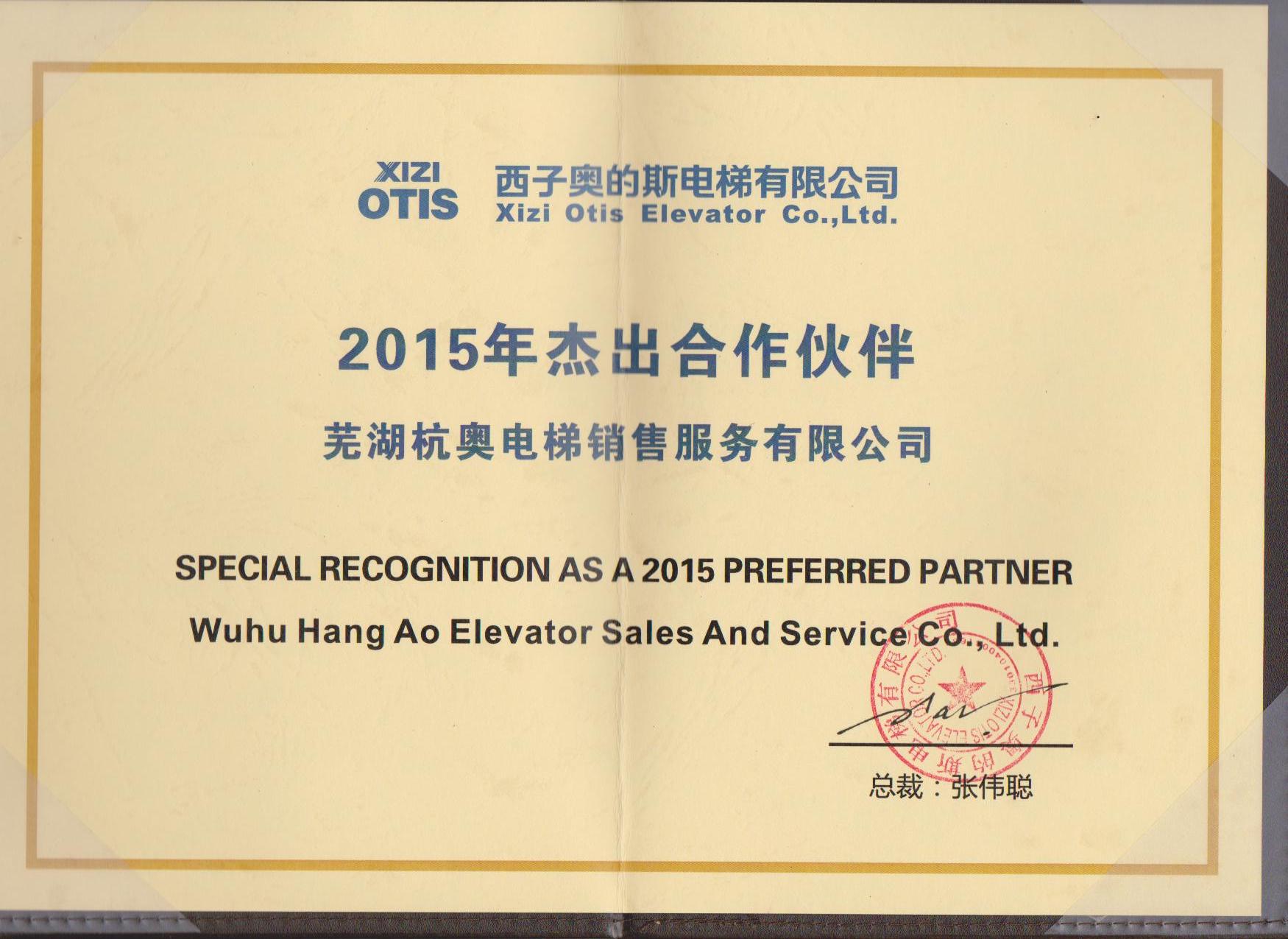 2015年西子奧的斯杰出合作伙伴