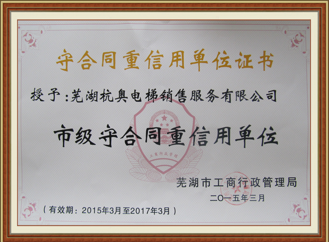 守合同重信用單位證書(shū)